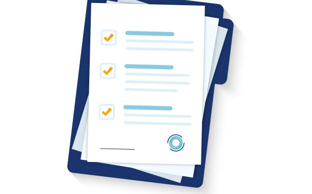 Contract papers. Document. Folder with stamp and text. Stack of agreements document with signature and approval stamp. Folder and stack of white papers